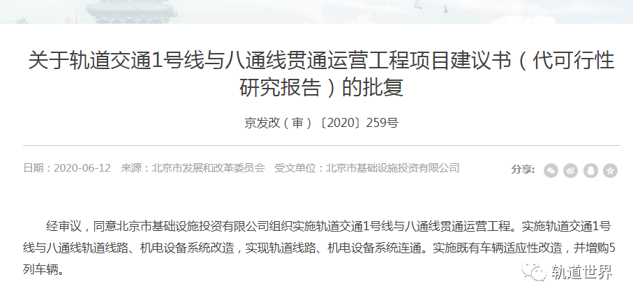 在本月早前时候,北京市发改委还批复了关于轨道交通1号线与八通线贯通运营工程项目建议书(代可行性研究报告)。一八贯通工程又有了新进展,未来可期。