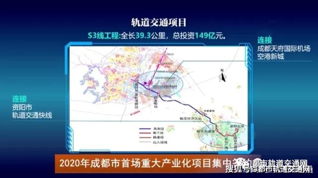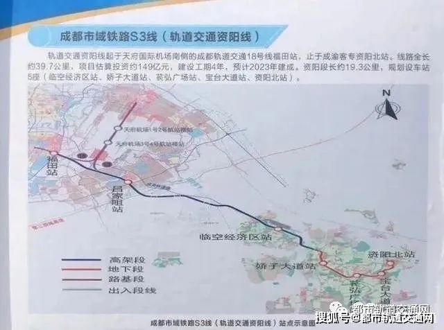 据东进通了解,S3线是连接成都天府国际机场空港新城和资阳市的轨道交通快线。项目起于成都地铁18号线福田站、途经吕家咀、临空经济区、娇子大道站、苌弘广场站、宝台大道站,止于资阳北站,线路全长39.3公里,其中资阳段19.3公里、设5座车站,总投资149亿元。