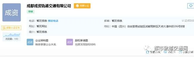 东进通根据天眼查显示,成都成资轨道交通有限公司成立时间为2020年7月15日,注册资本为3亿元,注册地址中国(四川)自由贸易试验区成都高新区天府大道中段396号8层,由成都轨道交通集团有限公司100%控股。