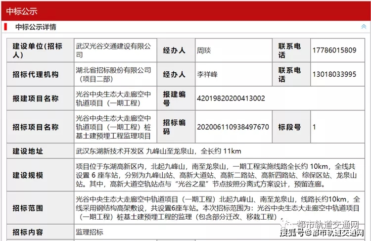 据悉, 光谷中央生态大走廊空中轨道项目(一期工程) 桩基土建预埋工程监理项目已进行中标公示,第一中标候选人为上海建通工程建设有限公司。待招标结束之后,应该就可以开始正式动工了。