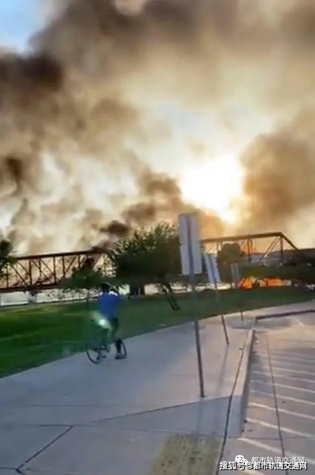 据英国《镜报》7月29日报道,当地时间7月29日上午,美国亚利桑那州马里科帕县坦佩市的一座铁路大桥被一列脱轨的火车压塌,导致列车起火,巨大的火焰和浓烟从列车中不断喷涌而出,浓烟遮天蔽日。
