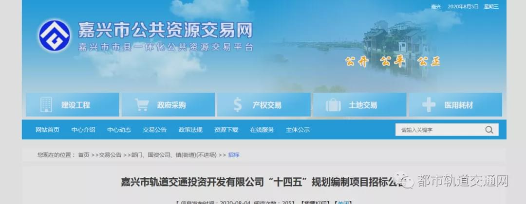 导读:嘉兴市轨道交通投资开发有限公司“十四五”规划招标