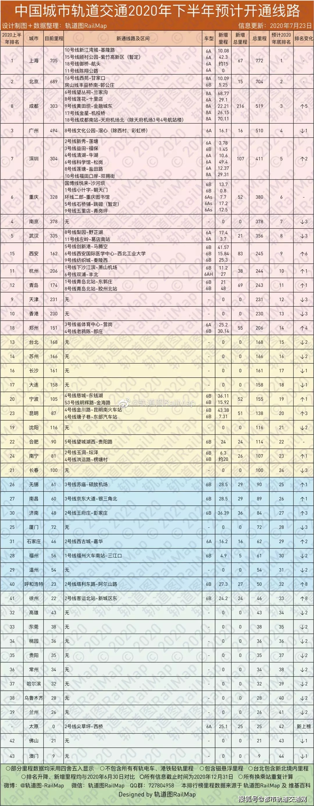 中国城市轨道交通2020年下半年预计开通的线路有哪些
