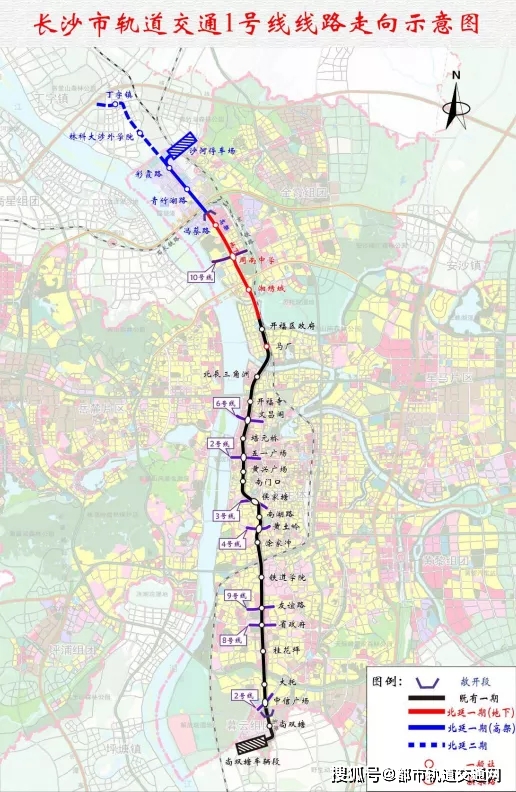 一、1号线北延一期,起于彩霞路站,止于开福区政府站(不含),总长9.93km,设站5座,采用高架敷设;