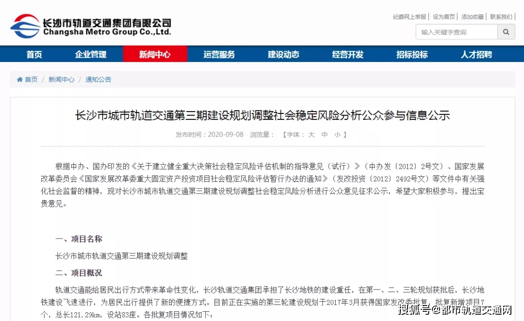 9月8日,长沙市轨道交通集团发布了《长沙市城市轨道交通第三期建设规划调整社会稳定风险分析公众参与信息公示》,公示中发布了长沙市城市轨道交通第三期建设规划调整的内容,第三轮规划将新增7个站点,总里程由121.29公里拟调整为131.82公里,增加10.53公里。
