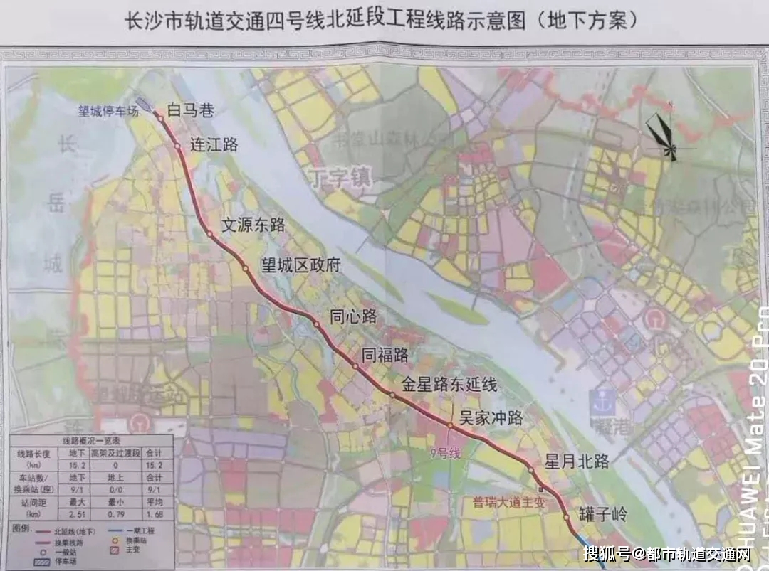 4号线北延拟调整为自白马巷站至普瑞大道站(现罐子岭站),线路长约15.26km,设站9座,采用地下敷设。