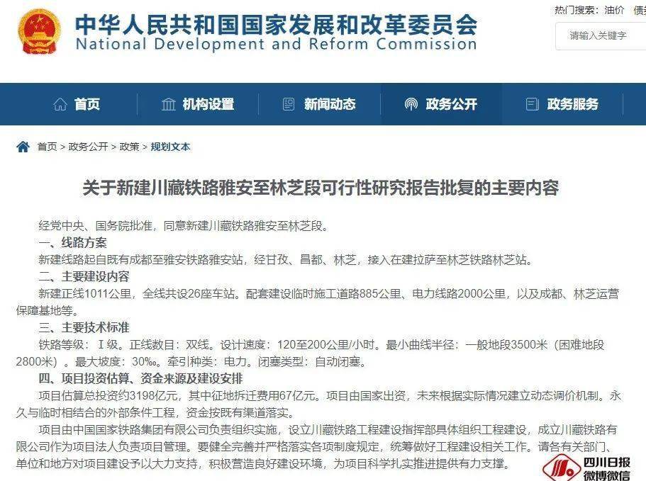关于新建川藏铁路雅安至林芝段可行性研究报告批复的主要内容显示,新建线路起自既有 成都至雅安铁路雅安站,经 甘孜、昌都、林芝,接入在建 拉萨至林芝铁路林芝站。