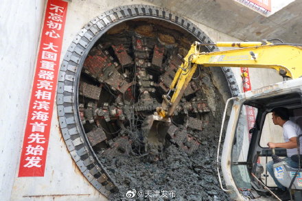 “盾构刀盘出来了!盾构隧道凿通啦!”伴随一阵轰鸣声,盾构机刀盘从滨海新区欣嘉园站预留洞口破土而出,现场工人欢呼起来,这意味着天津滨海新区首条地铁区间隧道顺利安全贯通。
