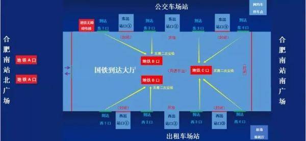 乘客在合肥南站北广场需乘坐地铁,可从A口通过楼扶梯进入地铁站,进站后需要进行二次安检。如下图黄色箭头所示: