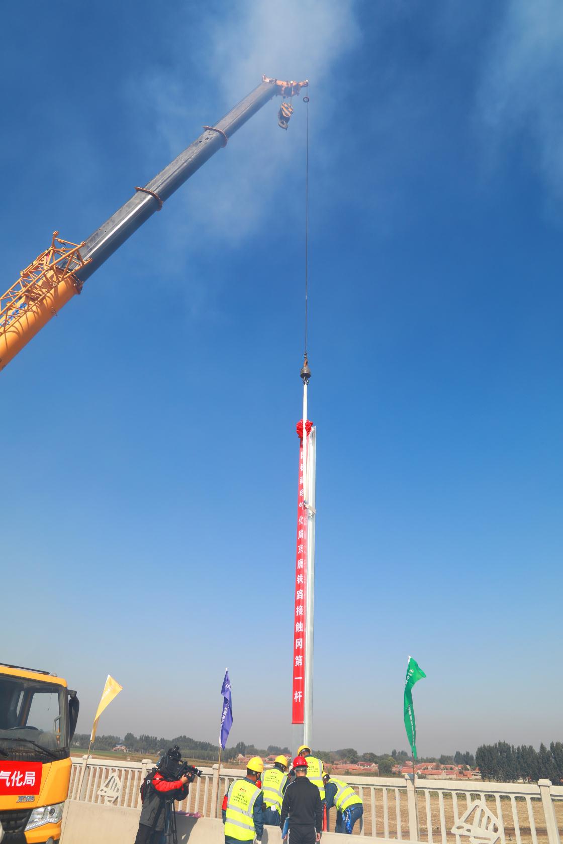 10月13日上午,伴随着起重机的轰鸣声,京唐铁路第一根接触网支柱在鸦鸿桥站至唐山机场站区间成功组立,这标志着京唐铁路项目继站前路基、桥涵、轨道等工程已经取得阶段性建设成果后,站后“四电”工程全面开工建设。