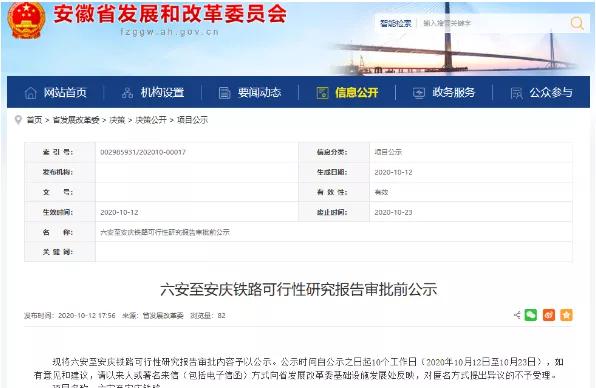 《六安至安庆铁路可行性研究报告审批前公示》