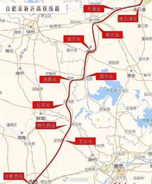 10月21日,合肥至新沂高铁安徽段初步设计获批,年内将全面开工建设。合新高铁安徽段线路长198.17公里,高速铁路标准,设计时速350公里。沿线设泗县东、五河、明光西、定远东、八斗(越行站)、桃花店(越行站)、新合肥西等7座车站,项目概算总投资289.9亿元,项目总工期3.5年。