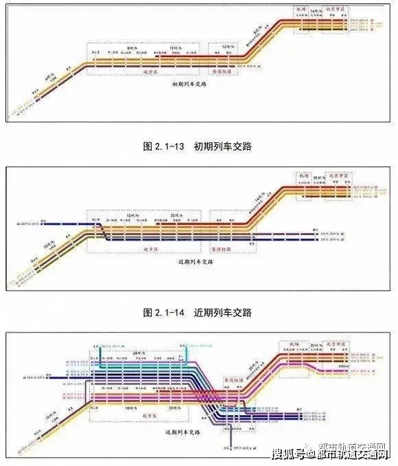 目前,中国内地地铁基本都是单线单交路运营,少数城市实现了大小交路和快慢车套跑,但R1线初期(开通至2026年)就规划了5个交路,近期(2026-2033年)规划了7个交路,远期(2033-2048年)更是增加至14个交路,并采用不同车型运行。