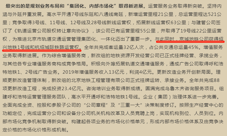去年, 北京市地铁运营公司收购轨道运营公司股权。 由此实现,在京投的大盘下, 北京市轨道交通运营管理集团化、一体化的目标。