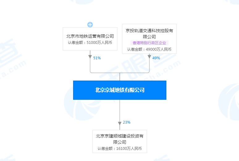 天眼查数据显示,京城地铁公司由北京市地铁运营公司与京投轨道交通科技控股有限公司合资成立。