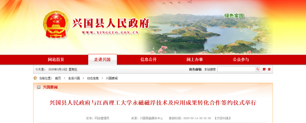 江西理工大学永磁磁浮技术工程示范线项目拟落地兴国县 5月11日,兴国县人民政府与江西理工大学永磁磁浮技术及应用成果转化合作签约仪式在兴国宾馆会议室举行。江西理工大学党委副书记、校长杨斌致辞,江西理工···