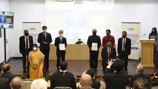 11月26日,艾哈迈达巴德-孟买高铁建造合同签字仪式在印度国家高铁公司总部举行。(印度国家高铁公司网站)日媒称,印度国家高铁公司26日首次与相关企业签署铁路建造合同。这条由日本和印度两国政府推动采用日···