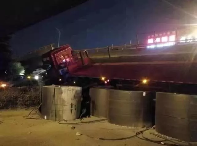 ▲2019年10月11日凌晨,无锡桥面侧翻救援现场