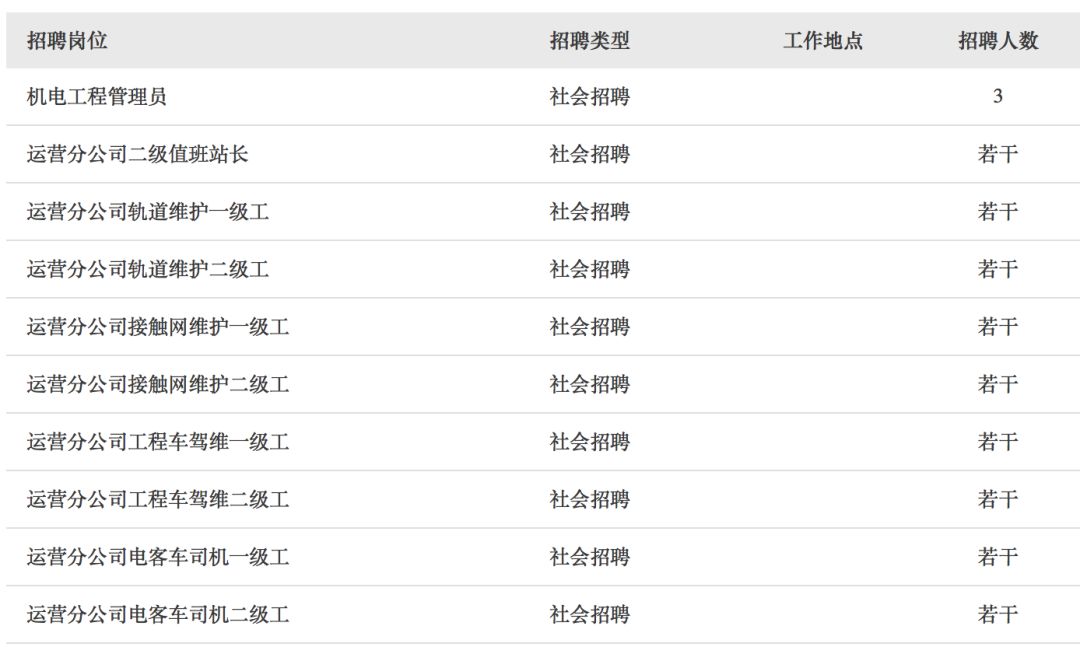 | 招聘岗位 | 运营分公司轨道维护二级工 |