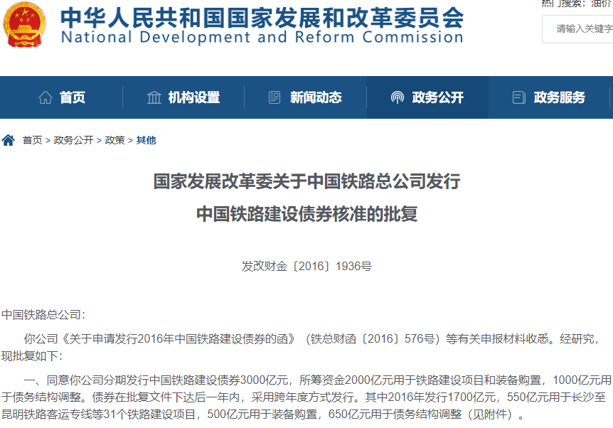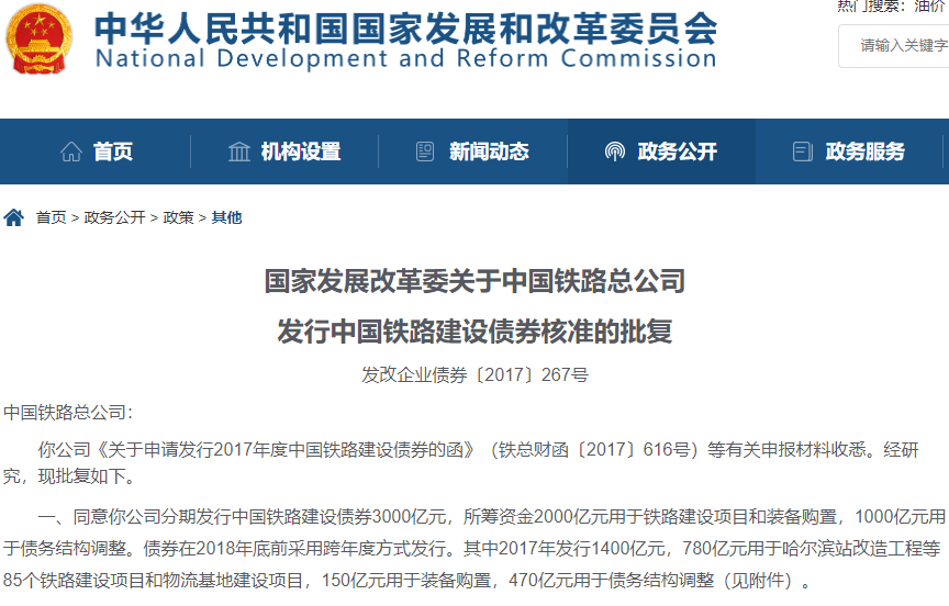 国铁集团发行中国铁路建设债券2100亿元