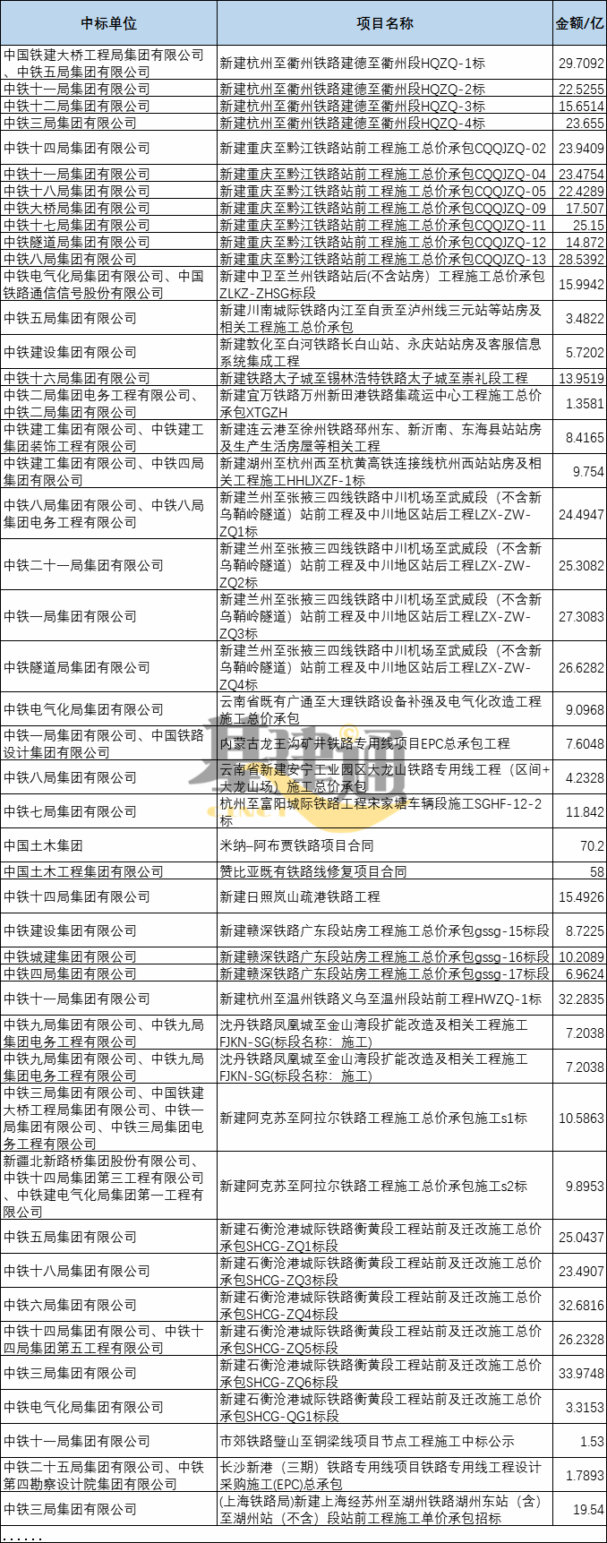 6月4日,国家发展改革委发布关于中国国家铁路集团有限公司发行中国铁路建设债券注册的通知。 根据通知,国家发展改革委同意中国国家铁路集团有限公司发行中国铁路建设债券2100亿元,所筹资金700亿元用于铁路建设项目,1400亿元用于债务结构调整。本次债券注册有效期为24个月,首期发行应在12个月内完成。 根据发改委官网数据显示:国铁集团(原铁路总公司)前几年均是发行中国铁路建设债券3000亿元,所筹资金2000亿元用于铁路建设项目和装备购置,1000亿元用于债务结构调整。 01 什么是中国铁路建设债券? 中国铁路建设债券:由国务院组成部门(原国家计委)批准,另一个国务院组成部门(原铁道部)发行的企业债券。简称:铁道债。意思是中国铁路建设债券是政府支持的债券。 债券主要用途:铁路建设项目和装备购置、债务结构调整。 02 为什么发行铁路建设债券? 因为这是弥补铁路投资缺口、防控债务风险的举措之一。 铁路建设主要资金来源包括中央预算内投资、铁路建设基金、铁路建设债券以及专项建设基金,还有银行的融资、地方政府的出资、社会投资等。 增加国家铁路建设资本金1000亿元 虽然相比往年,今年中国铁路建设债券发行来得更早,2100亿元相比以前有所减少,且所筹资金的用处也有所差异。 但在5月22日上午十三届全国人大三次会议《政府工作报告》中就已提到,今年要扩大有效投资,加强交通、水利等重大工程建设。增加国家铁路建设资本金1000亿元。 据《关于2019年中央和地方预算执行情况与2020年中央和地方预算草案的报告》显示,中央财政向中国国家铁路集团注资500亿元,支持发行500亿元铁路建设债券用作资本金,加大沿海干线高铁、城际铁路和沿江高铁项目建设力度。 铁路投资高位运行,“二铁”领跑铁路建设市场 铁路是拉动经济增长的“火车头”,近年来,我国铁路固定资产投资额连年高位运行且趋于稳定。 2020年全国交通运输工作会上透露的信息显示,2020年交通运输将完成铁路投资8000亿元。但据《中国经营报》此前报道,2020年全国铁路固定资产投资计划目标已经调整,除上海铁路局和广铁集团已经确认调增额度外,北京局、武汉局、成都局等集团业已确认即将调整。据记者不完全统计,2020年全国铁路固定资产投资额已经超过8200亿元。 国铁集团下达给广铁集团的年度投资计划已经从年初的715亿元调整至目前的795.18亿元,追加投资80.18亿元,增长11.21%,约占全路年度投资计划的10%,创广铁集团年度投资历史纪录。 上海铁路局曾发布消息,全年投资从850亿元调增至900亿元以上,比原投资计划增加50多亿元,其中上半年计划完成350亿元左右,建设任务持续维持高位。 1月2日,国铁集团工作会议强调,2020年铁路工作的主要目标是:铁路安全保持持续稳定;国家铁路完成旅客发送量38.5亿人、货物发送量36.5亿吨;全面完成国家下达的铁路投资任务,确保投产新线4000公里以上,其中高铁2000公里。 “二铁”一直以来都是铁路建设的“主力军”,在大中型铁路建设市场具有绝对的优势。 中国中铁在高铁建设、桥梁建设、隧道建设、铁路电气化、盾构及高速道岔的研发制造、试车场建设等方面,积累了丰富的经验,形成了独特的管理和技术优势。2019 年铁路业务新签合同额3112.4 亿元,同比增长 22.5%,在 2019 年国内大中型铁路建设市场占有率达 50.5%,继续保持国内第一。 中国铁建高原、高寒、高速铁路设计施工技术已经稳居世界领先水平。2019年铁路工程新签合同额 2613.218 亿元,同比增长 23.24%。 虽然近年来中国建筑、中国交建、中国中冶、中国电建等也有承揽部分铁路项目,但大多数铁路项目还是由中国中铁、中国铁建及其子公司承揽。 据基建通大数据统计,截止目前中国中铁、中国铁建中标的部分重大项目如下: