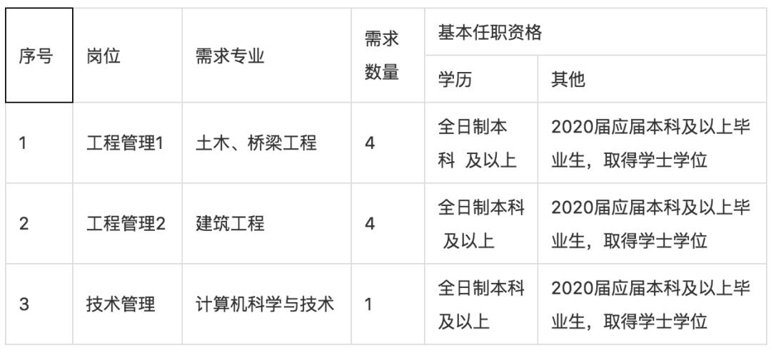 注:上表招聘专业为我公司全部需求专业,各院校招聘专业详见本校就业网。