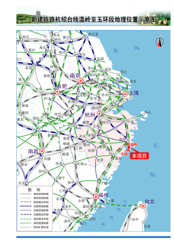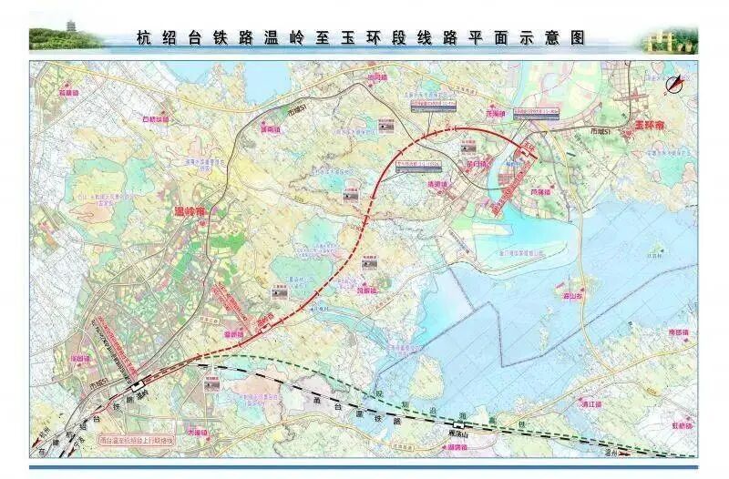 温岭至玉环铁路项目作为杭绍台铁路的延伸线,从杭绍台铁路温岭站引出,向南经温岭市温峤镇温岭西站,出站后向东跨漩门湾,止于玉环市芦蒲镇玉环站,全长约37公里,设计时速350公里,总投资概算约76亿元。