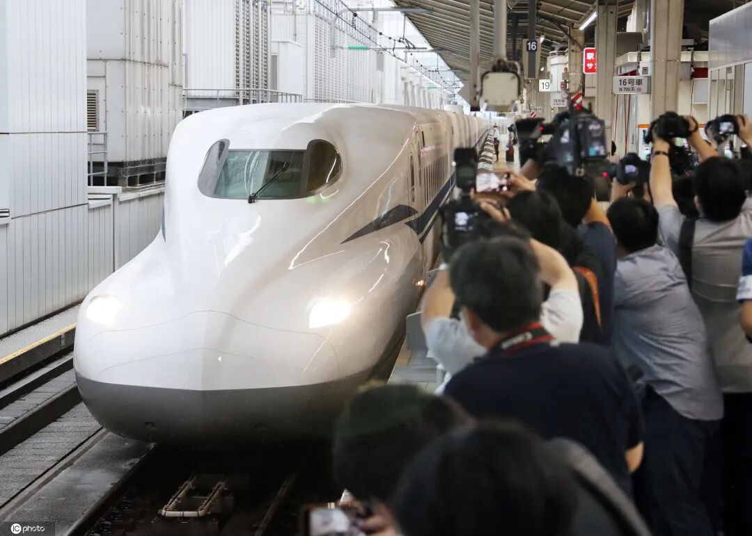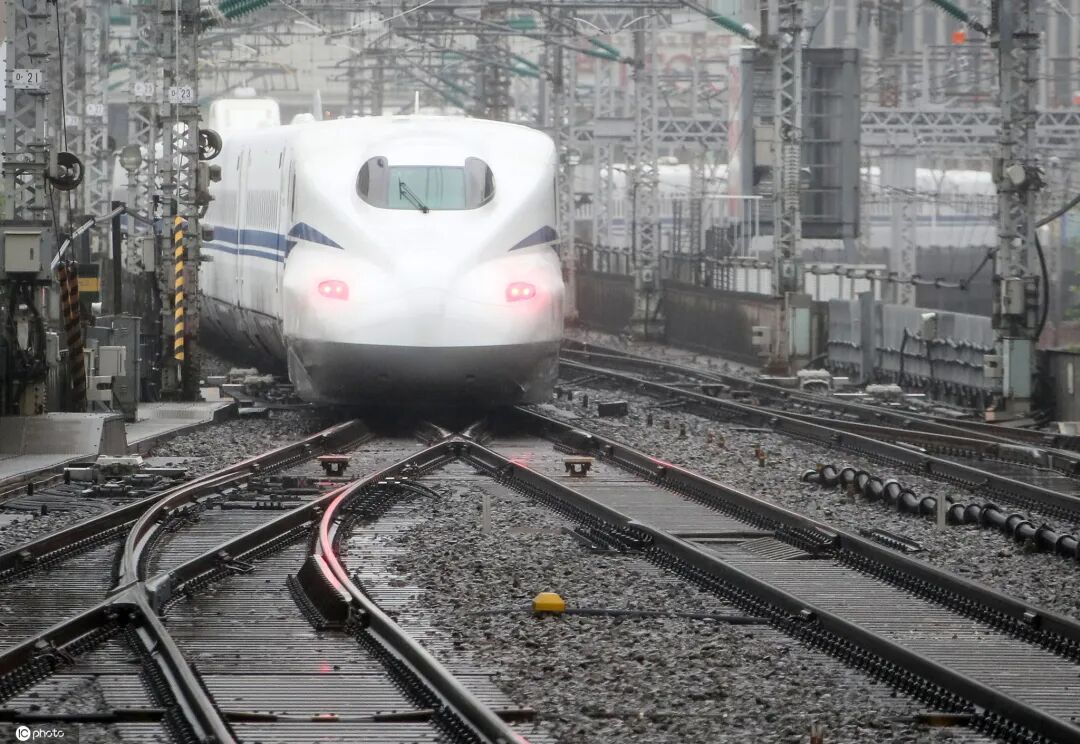当地时间2020年6月13日,日本东京,新干线列车N700S驶离东京站。据悉,“N700S”作为东海道新干线时隔13年的全车型更改车辆,其亮相日期已定于7月1日,其特征为头节车厢两侧呈棱角形状。部分车厢内安装了减轻横向摇晃的装置。