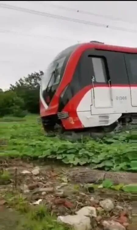 据网友分享视频爆料,2020年6月29日,常州地铁某车辆段试车线上,一列车在调试过程中冲出试车线车挡,撞倒围墙进入菜地。