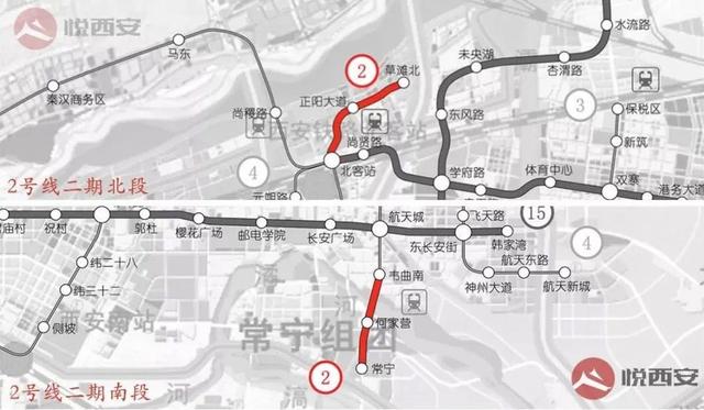 2号线二期丨北客站-草滩北;韦曲南-常宁