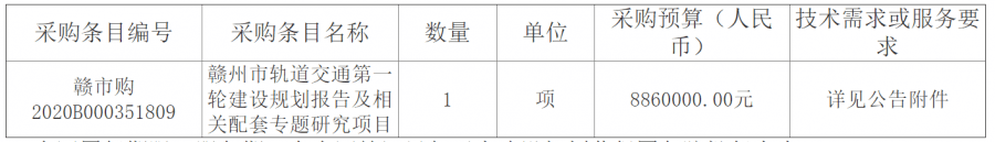 为满足赣州市城市发展需求,进一步突出轨道交通在城市发展中的引领带动作用,赣州市铁路建设办公室拟招标确定一家单位承担赣州市城市轨道交通第一轮建设规划编制工作 (建设规模暂定57.7km)。