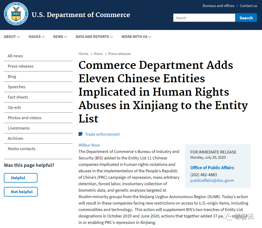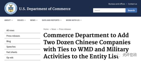 7月21日凌晨,美国商务部工业和安全局(BIS)将11家中国企业纳入实体清单。未经美国政府批准,被列入黑名单的企业不能从美国企业购买零部件。此前的5月22日,美国商务部已二次将共有33家中国公司和机构被列入“实体清单”。