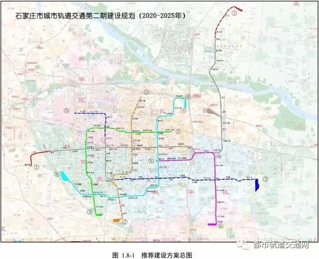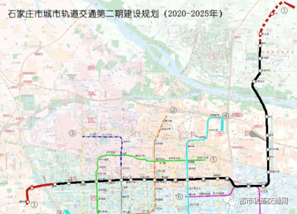 2020年7月18日,轨道公司党委书记、董事长郭少旭带队督导2号线一期工程现场施工情况,轨道公司工会主席狄政通,建设分公司以及中铁北方公司相关人员陪同检查。 石家庄市轨道公司原党委书记、董事长为付庆文,根据石家庄地铁官网消息:2020年6月24日下午,市政协副主席武义青一行9人调研我市轨道交通建设情况,市轨道公司党委书记、董事长付庆文参加了调研活动。 石家庄市轨道交通有限责任公司发布石家庄市城市轨道交通第二期建设规划(2020~2025年)及线网规划环境影响评价第二次公示,涉及到4个建设项目。新地铁线路经过你家么?一起来看↓↓↓ 规划涉及4个建设项目 公示显示,《石家庄市城市轨道交通第二期建设规划》涉及到4个建设项目,具体为:1号线三期、4号线、5号线一期、6号线一期。合计建设规模63.60km,车站52座,投资估算总额为446.36亿元。 近期建设规划期定为2020年~2025年 公示中提到,本次建设规划研究起始年限为2020年;近期建设规划期的确定主要考虑规划期内使所有线路都建成运营,根据近期建设方案的工期安排,最后一条线路将在2026年年底建成通车。故本次建设规划的近期建设规划期定为2020年~2025年。 推荐建设方案总图 各条线路概况 1号线三期 1号线三期工程是1号线西延线。 线路东起一期西王站,沿中山西路向西地下敷设,途经上庄镇政府后向南沿京赞路敷设至槐安路。 线路全长3.74km,设站2座,分别为上庄站和槐安路站,平均站间距约为1.865km。车辆采用A型车,6辆编组,最高时速80km/h。 计划2020年7月开工,2024年7月建成,与1号线一、二期贯通运营。 4号线 4号线为东北—西南向L型辅助线,与5号线在中心区外围扣成环线,起到了环线的作用。 4号线西起西南二环西侧西岗头,沿汇明路向南至汇丰路,沿汇丰穿过铁路后沿仓丰路一直向东,至裕翔街向北至南二环路,后向东至建华大街,沿建华大街一直向北,至北二环路后向东,沿高营大街向北至石黄高速。 线路全线长约24.4km,共设站21座,平均站间距1193m,共设换乘站6座。车辆采用A型车,初近远期编组为4-4-6,最高时速 80km/h。全线设西岗头车辆段、十里铺停车场。 计划2022年1月开工,2026年12月建成运营。 5号线 5号线为L型辅助填充线,与4号线相扣成环。 5号线一期工程南起宫北路,沿红旗大街向北至新石中路,转至友谊大街,沿友谊大街向北敷设至和平西路后向东转至市庄路,沿市庄路敷设,下穿军械学院校区、六线铁路隧道后至光华路,继续向东敷设至谈固大街设谈固北大街站。 线路全长约19.7km,共设站18座,平均站间距约1114m,共设换乘站7座。车辆采用A型车,初近远期编组为4-4-6,最高时速 80km/h。一期工程设宫家庄停车场。 计划2021年1月开工,2026年1月建成运营。 6号线一期 6号线一期工程为本次建设规划申报项目,为6号线东段。 工程西起槐中路与建华大街交口,沿槐中路向东敷设,至新元高速线路向北转至长江大道,沿长江大道向东敷设,经过天山南大街,至昆仑大街转向南,沿昆仑大街向南敷设,终点站为南三环以北昆仑大街上的东佐路站。 一期工程全长约15.76km,共设站11座,其中换乘站3座,平均站间距约为1.50km,共设换乘站3座。车辆采用A型车,初近远期编组为4-4-6,最高时速80km/h。一期工程设东佐车辆段。 计划2023年1月开工,2027年12月建成运营。
