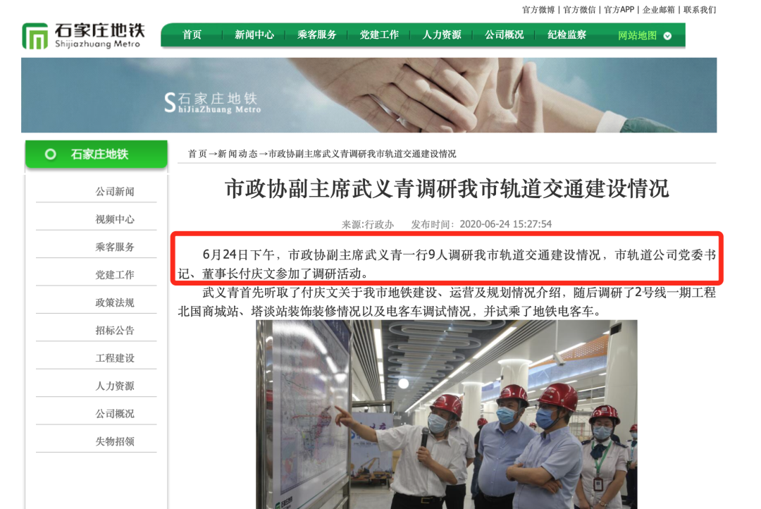 根据石家庄地铁官网消息: