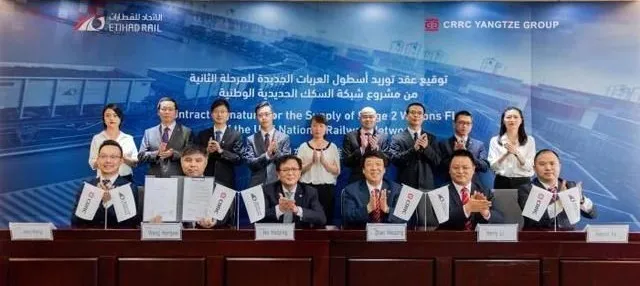 阿联酋王子、阿联酋铁路公司董事会主席阿勒纳哈扬表示,中国中车是世界上最大的轨道交通装备供应商,早在2011年就为阿联酋铁路项目一期提供铁路货车,助力阿联酋铁路事业发展。此次签约的铁路车辆根据阿铁特定要求进行制造,包括很多最新的技术、制造和服务,同时对运用于特殊的区域运营环境条件下进行量身定制。本项目将为阿联酋实现经济增长和迈向可持续性交通发挥重要作用。中国中车总裁孙永才在致辞中表示,自2011年开始,阿铁与中车开启了长达十年的合作。十年间,双份携手共进、见证彼此的成长。未来,中国中车愿与阿铁开展更深层次、更广泛领域的合作,继续为两国全面战略合作伙伴关系以及阿联酋铁路事业的发展贡献“中车力量”,为我们的互利共赢开启更加辉煌的新篇章。据介绍,中车长江集团是中国中车旗下铁路货车版块龙头企业,集设计、制造、服务于一体,提供全球一流的物流装备系统解决方案,先后向全球30多个国家和地区提供稳定、可靠、具有较高性价比的铁路货车整车20000余辆。早在2011年,中车长江集团就开始向阿联酋铁路公司提供产品和服务,并于2013年在阿联酋设立了阿布扎比分公司,加强与中东地区客户的沟通、合作,提高服务质量。自阿联酋铁路一期项目开始,中国中车与阿联酋铁路公司建立起了亲密无间的合作关系,十年间,通过项目执行、售后服务、互访交流等形式开展合作,建立起了深厚友谊。