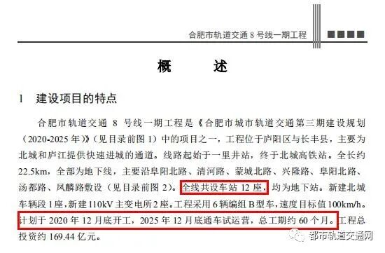 8号线一期工程计划于2020年12月底开工,2025年底通车运营,总工期60个月。