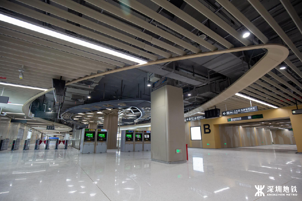 (双拥街站站厅层) 深圳地铁10号线沿途经过的片区中平湖、坂雪岗是两个对深圳而言非常重要的片区平湖是深圳最重要的北部交通门户之一G15沈海高速机荷段S28水官高速,以及京九广深等交通干线都在此处交汇坂雪岗片区则是深圳高新技术产业带的重要组成部分聚集了华为、新天下康冠、驰源等十多家国内外知名企业 (坂田北站站厅层) 在10号线开通之前坂田片区只有5号线的三个站(五和、坂田、杨美)“一核四翼”中的“核”——华为离最近的坂田站也相距甚远公共交通的选择只能以公交车来解决通勤问题然而,坂田片区不仅有华为的总部也是龙岗区在《粤港澳大湾区建设深圳指引》中最新定位“全球电子信息产业高地的深圳东部中心”的最重要支撑代表着深圳又一个创新中心的崛起