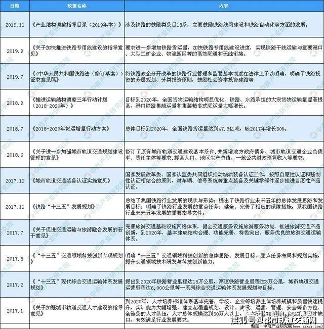 导读:2020年中国轨道交通行业最新政策汇总一览