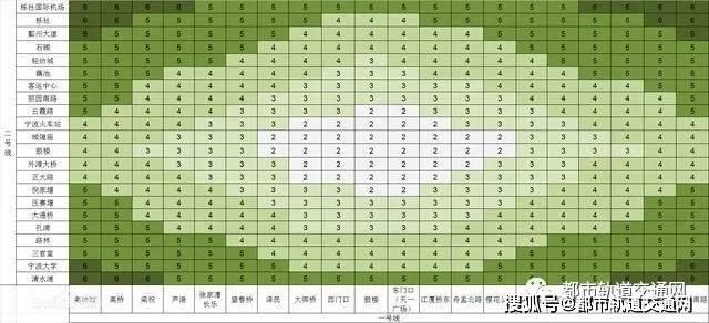 根据客流预测结果,2020年宁波市轨道交通基本网形成后,市区内部公交出行量达560万人次,占市区出行全方式比例为34.4%;考虑市域轨道交通运量,公交出行量达到617万人次,轨道出行量占公交比例为38.1%,轨道换乘系数为1.40,平均运距为11.7千米,客运强度为1.2万乘次/千米。