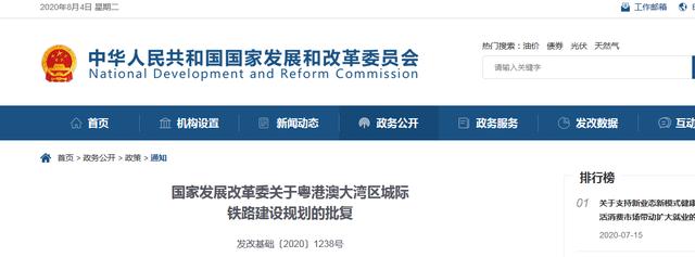 关于粤港澳大湾区城际铁路建设规划的批复(发改基础〔2020〕1238号)