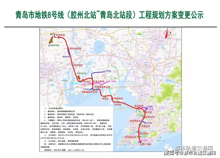 青岛市地铁8号线北段(胶州北站-青岛北站)工程规划方案变更公示