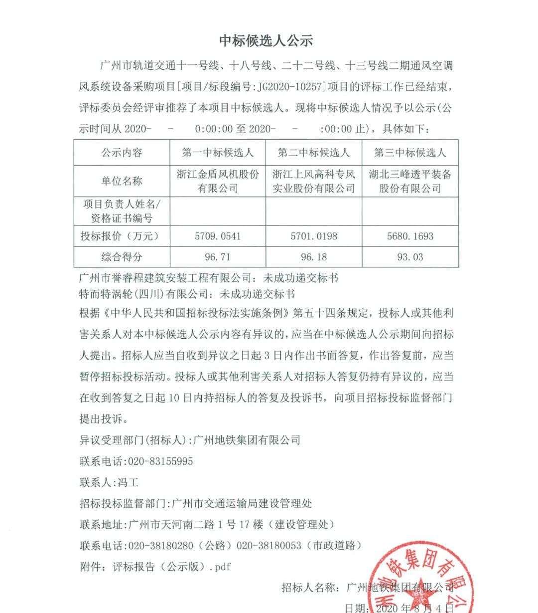 广州地铁11、18、22、13号线二期通风空调风系统设备采购中标