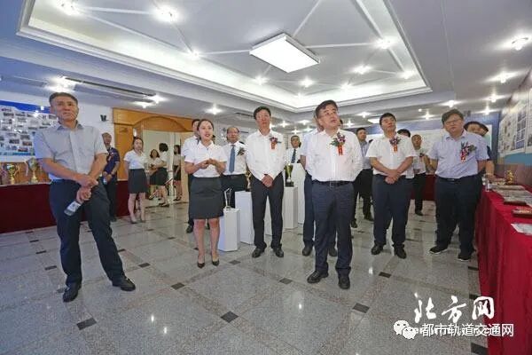揭牌仪式结束后,各位领导和嘉宾在讲解员的引导下,参观了中交(天津)轨道公司历经初创阶段、初步成长到并轨三个阶段的珍贵历史图片展以及中交二公司以世界超级工程港珠澳大桥、世界第一大跨径斜拉桥苏通长江公路大桥、中国高速公路样板路沪宁高速公路及其扩建工程为代表,承建的一大批国家大型重点工程展,在主展区介绍了中交(天津)轨道公司 33 年发展历程中的重要时刻和重大工程事件的珍贵历史资料展和实物展,最后观看了中交(天津)轨道公司宣传片。
