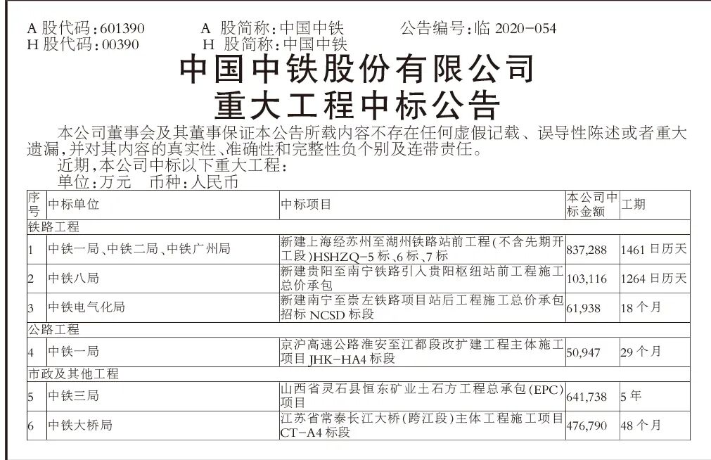 481亿!中国中铁重大工程中标公告