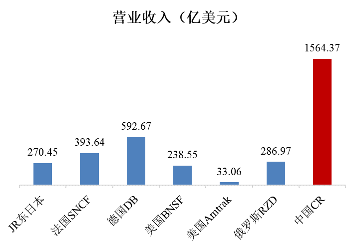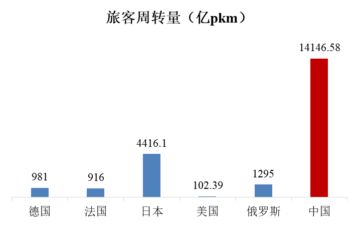 注:日本、法国、德国、俄罗斯、中国为全国铁路2018年数据;美国为Amtrak公司2018年数据。