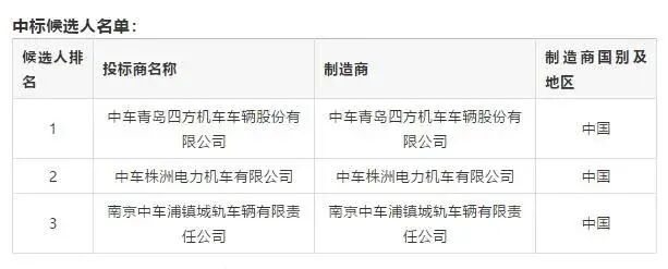 郑州市轨道交通3号线二期工程车辆招标项目中标候选人公示