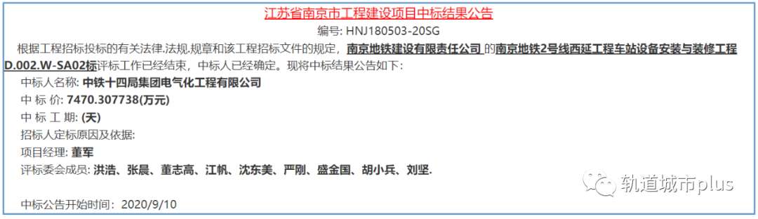 南京地铁2号线西延工程车站设备安装与装修工程D.002.W-SA02标
