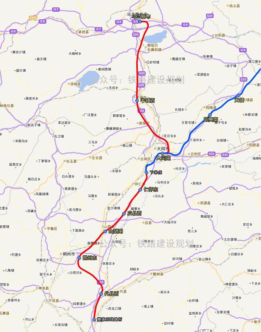 新建集宁经大同至原平高铁是国家中长期铁路网规划的“八纵八横” 高速铁路网中呼南通道的重要组成部分,线路北起呼张高铁的乌兰察布站,途经察右前旗、丰镇、大同、朔州市,南连忻州市,并经由大西客专与太原市贯通。