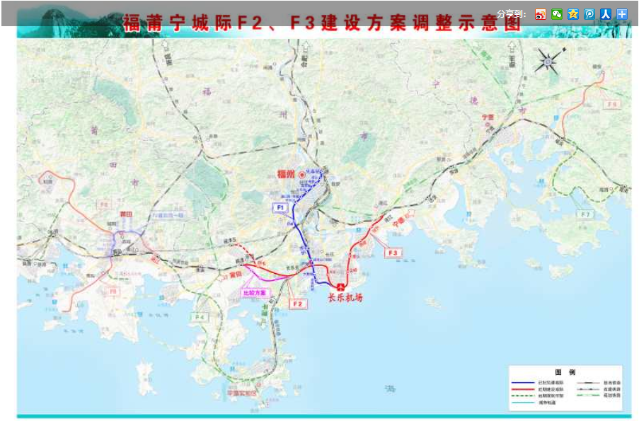(1)莆田-长乐机场城际铁路(F2线):新建长乐机场至福清站段,线路自长乐机场站引出后,折向西南沿S201、泽竹快速路等道路,经漳港、滨海西、长乐东站、南岭镇、祥丰镇至福清站。规划线路全长约49.0km,设长乐机场站、漳港站、滨海西站、长乐东站、祥丰站、福清站等6座车站。