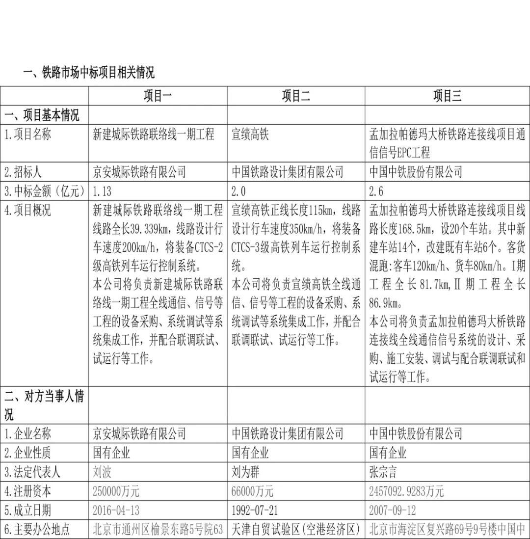 新建宣城至绩溪高速铁路“四电”系统集成及相关工程XJSD标段(以下简称“宣绩高铁”),中标金额2.0亿元;